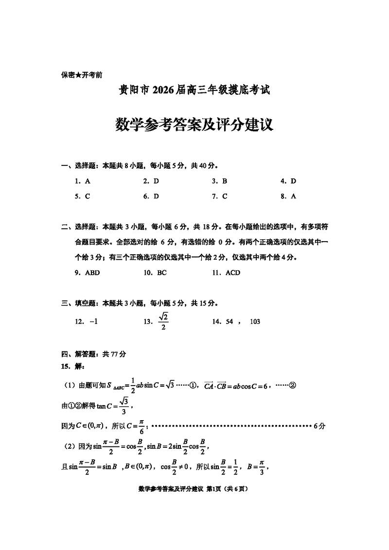 贵阳市、铜仁市2026届高三9月摸底考数学考试已于近日开考,为方便考生考后及时查看考试情况,查漏补缺、弥补不足,本文整理了试题答案解析相关信息!