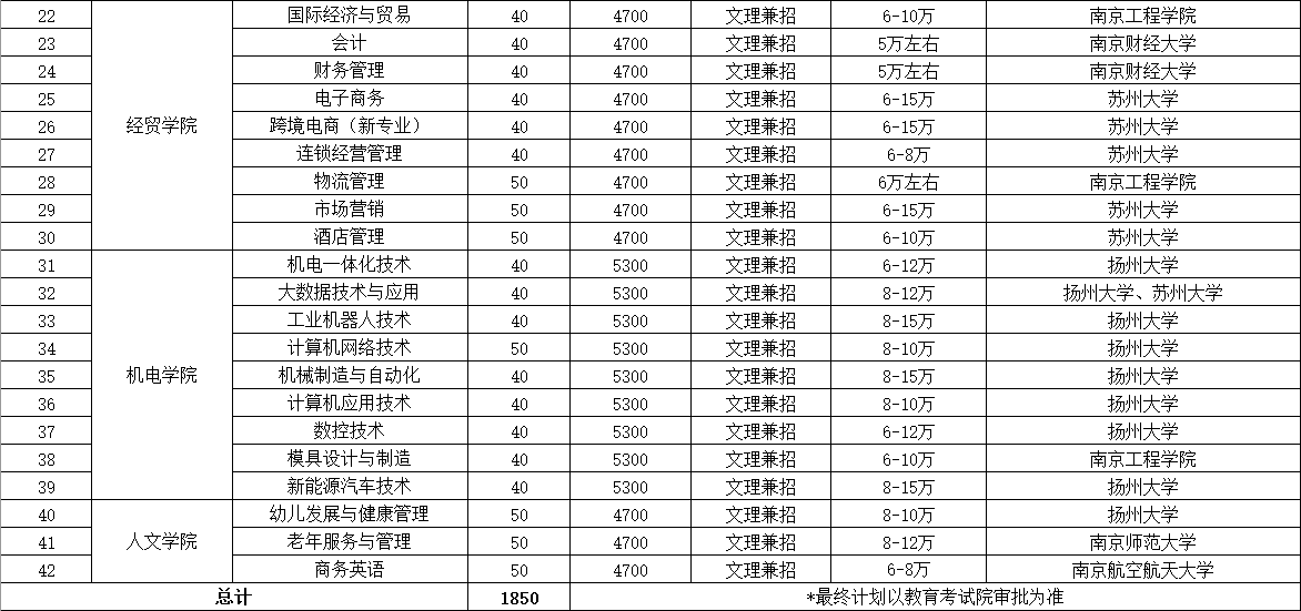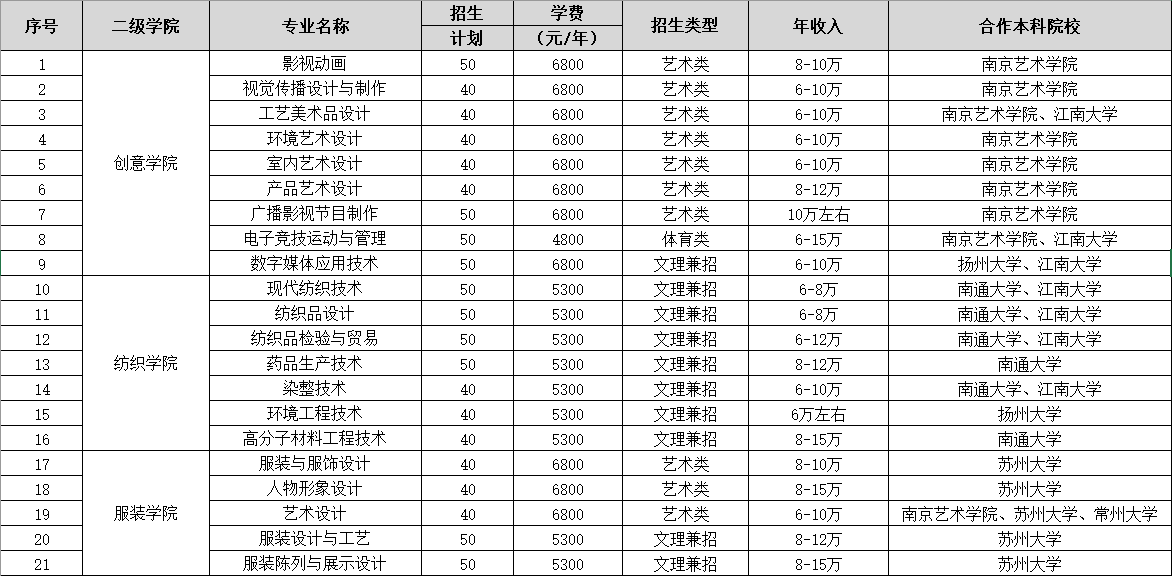2021年常州纺织服装职业技术学院提前招生专业及计划