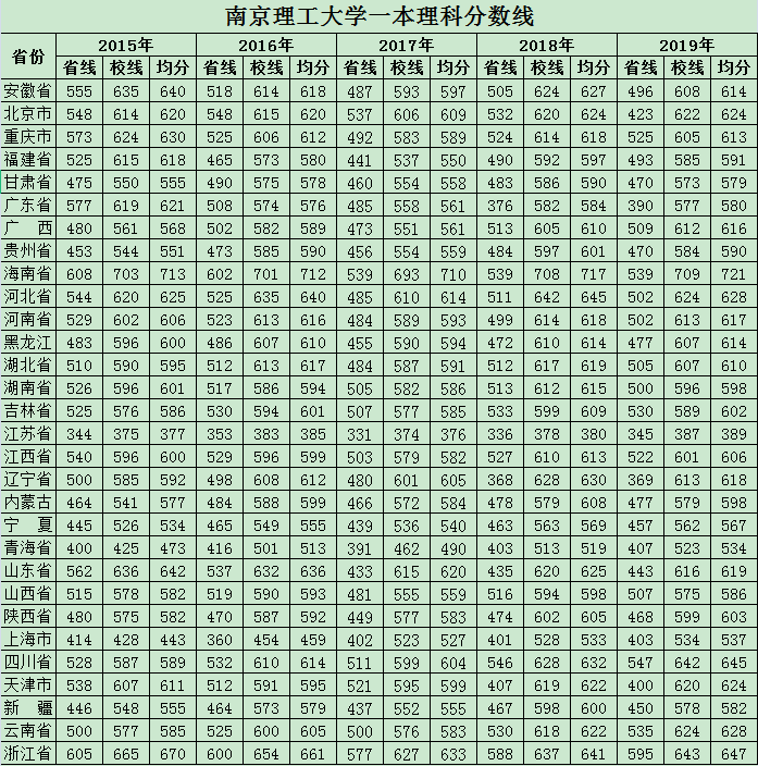 2020南京理工大学分数线没有发布,下面是近五年分数线,供参考。