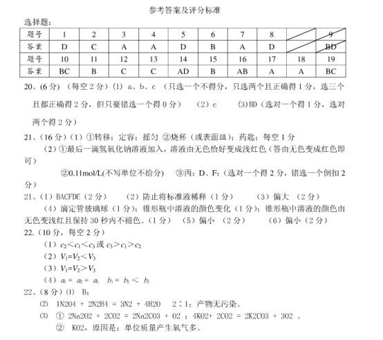 2021年全国乙卷理综真题答案解析