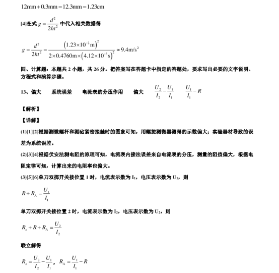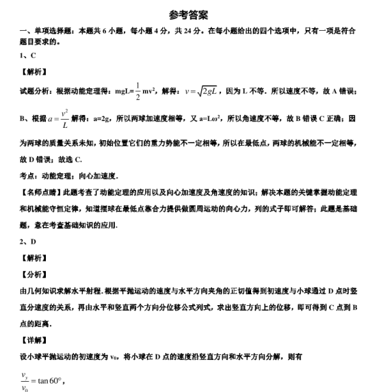 2021年全国乙卷理综真题答案解析