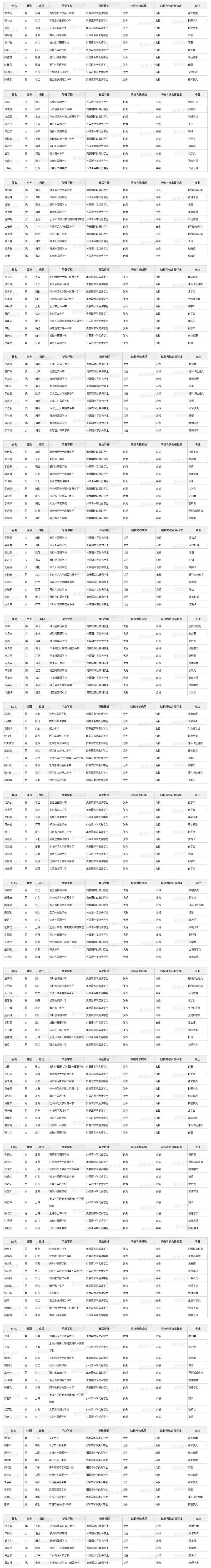 2020清华北大保送名单367人