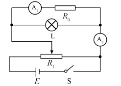 某同学要研究一小灯泡L(3.6 V,0.30 A)的伏安特性。所用器材有:电流表A1(量程200 mA,内阻Rg1=10.0 Ω),电流表A2(量程500 mA,内阻Rg2=1.0 Ω)、定值电阻R0(阻值R0=10.0 Ω)、滑动变阻器R1(最大阻值10 Ω)、电源E(电动势4.5 V,内阻很小)、开关S和若干导线。该同学设计的电路如图(a)所示。