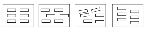 ①并列排布 ②横向错列排布 ③自由排布 ④纵向错列排布