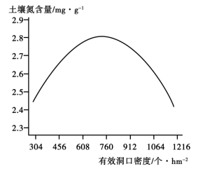 高原鼠兔多穴居于植被低矮的高山草甸地区,因啃食植物曾被看作是引起高山草向退化的有害动物而被大量灭杀。土壤全氮含量是衡量土壤肥力的重要指标。通常土壤肥力越高,植被生长越好,生态系统抗退化能力越强。图8示意青藏高原某典型区域高原鼠兔有效洞口(有鼠兔活动)密度与土壤全氮含量的关系。