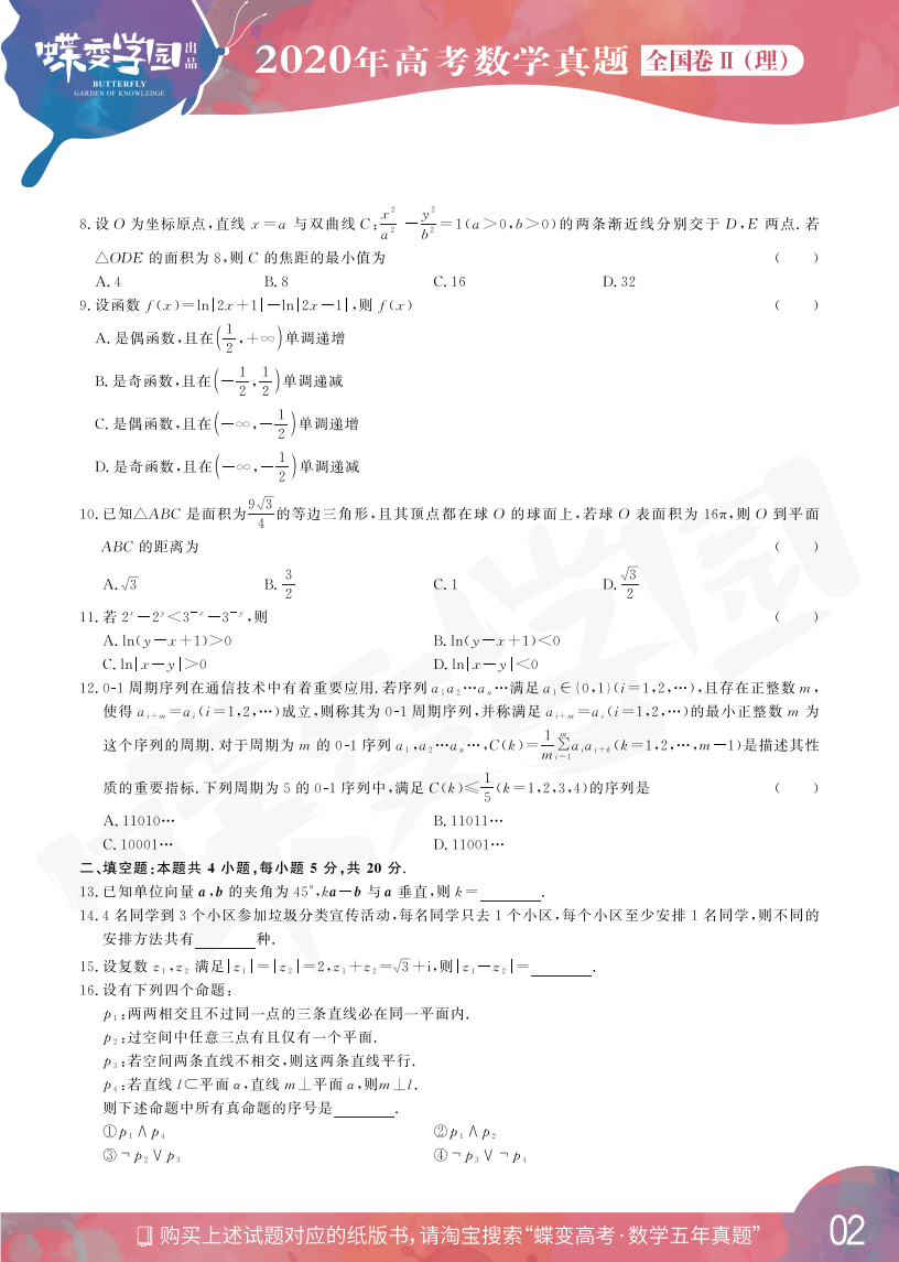 2020年全国2卷高考理科数学真题试卷【高清精校版】 时间:2020-07-09 13:21 数学试题 本文档整理了【高清精校版】2020年全国2卷高考理科数学真题。点击文末的下载,可下载PDF格式的文件,便于打印和存储。