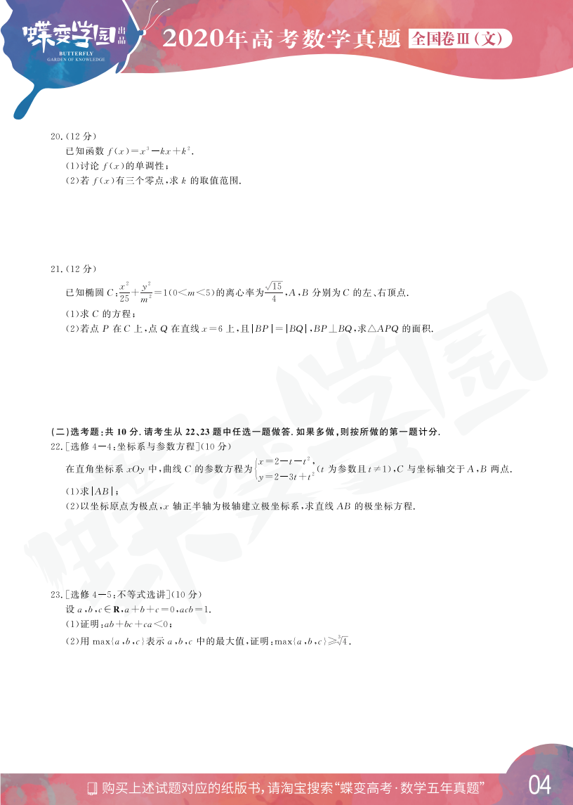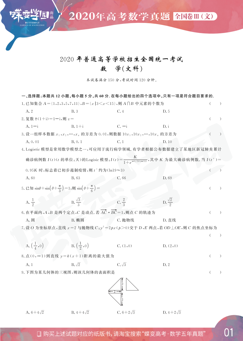 2020年全国3卷高考文科数学真题试卷【高清精校版】 时间:2020-07-09 13:25 数学试题 本文档整理了【高清精校版】2020年全国3卷高考文科数学真题。点击文末的下载,可下载PDF格式的文件,便于打印和存储。