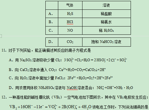 10.喷泉实验装置如图所示。应用下列各组气体—溶液,能出现喷泉现象的是