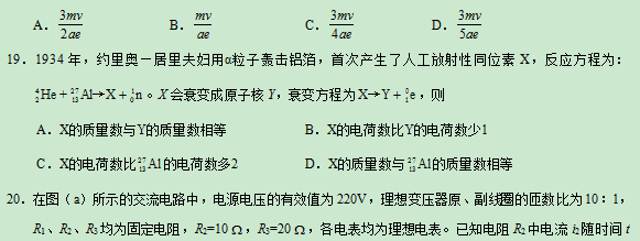 18.真空中有一匀强磁场,磁场边界为两个半径分别为a和3a的同轴圆柱面,磁场的方向与圆柱轴线平行,其横截面如图所示。一速率为v的电子从圆心沿半径方向进入磁场。已知电子质量为m,电荷量为e,忽略重力。为使该电子的运动被限制在图中实线圆围成的区域内,磁场的磁感应强度最小为