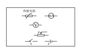 已知一热敏电阻当温度从10 ℃升至60 ℃时阻值从几千欧姆降至几百欧姆,某同学利用伏安法测量其阻值随温度的变化关系。所用器材:电源E、开关S、滑动变阻器R(最大阻值为20 Ω)、电压表(可视为理想电表)和毫安表(内阻约为100 Ω)。