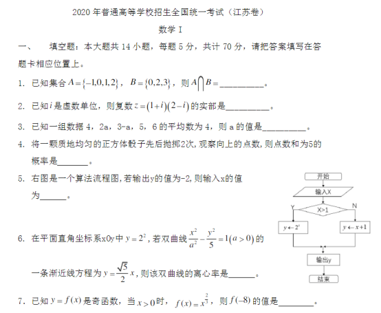2020江苏高考数学试题及答案解析 时间:2020-07-09 17:07 数学试题 参考答案1、2、33、24、5、6、7、8、9、10、11、412、13、14、15、16、17、18、19、20、来源:百度文库