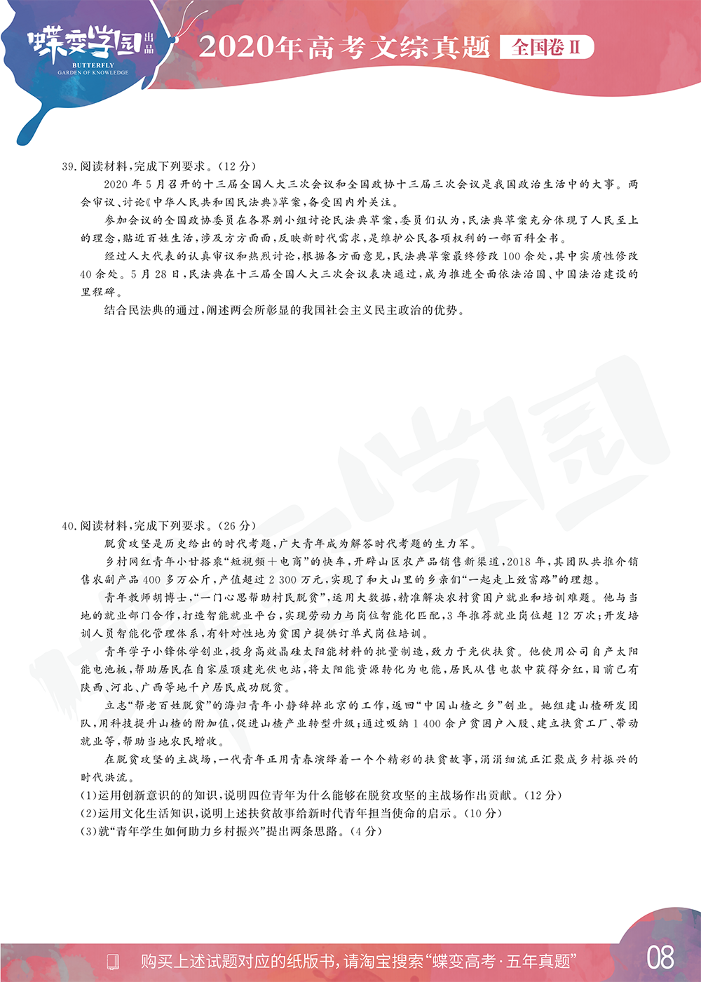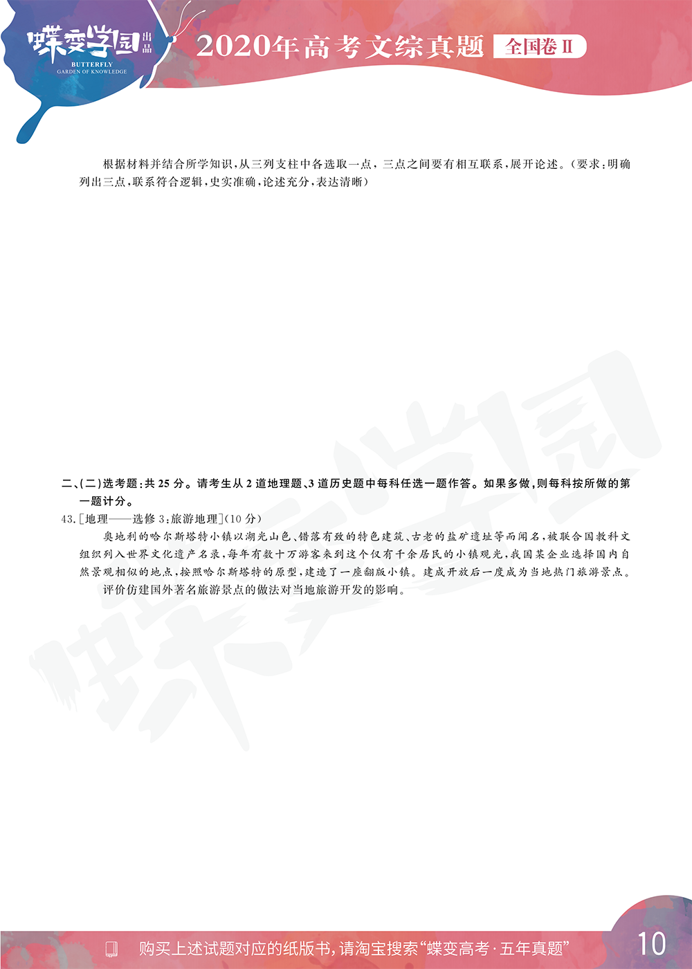 2020年全国2卷高考文综真题试卷【高清精校版】 时间:2020-07-10 11:10 文综试题 本文档整理了【高清精校版】2020年全国2卷高考文综真题。点击文末的下载,可下载PDF格式的文件,便于打印和存储。
