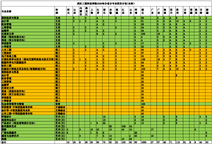 武汉工程科技学院招生计划2020