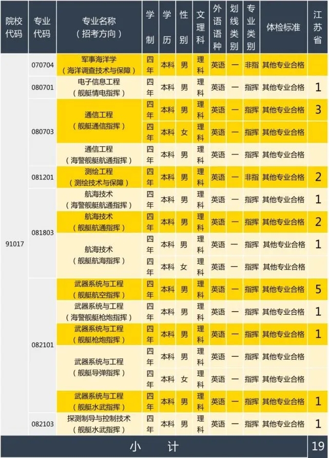 近日,同学们和广大家长朋友们非常关心的2020年海军大连舰艇学院在江苏省招生计划已经公布。下面小编为大家详细介绍一下,供大家参考。