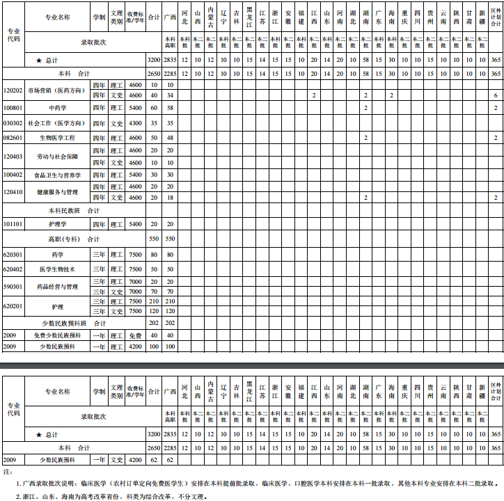 | 注:招生计划以各省招生机构公布为准;学费最终以广西物价局公布的收费标准为准 | ||||||||||||||||||||
