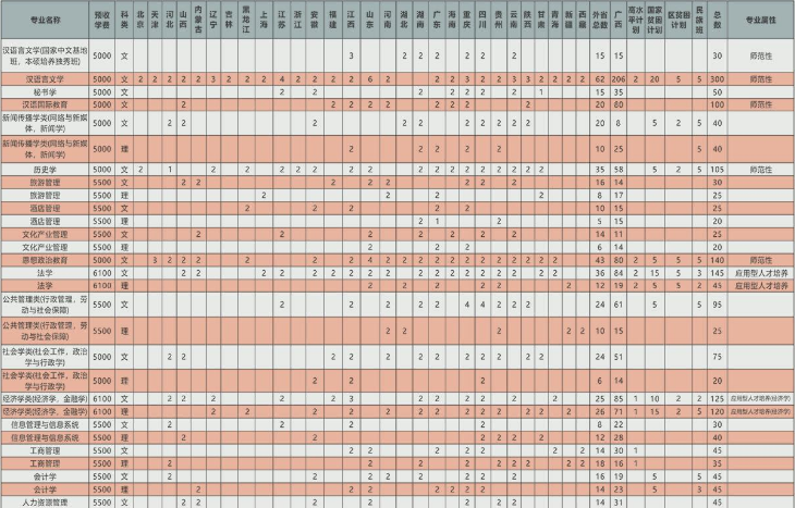 | 本科 | 四年 | 050101 | 汉语言文学 | 师范类 | 130 | 124 | 2 | 1 | 3 | 6 | 文史类 | 4200 | ||||||||