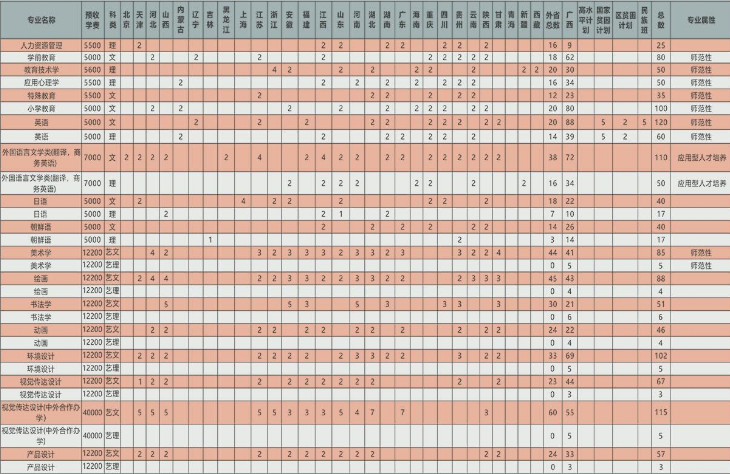 | 本科 | 四年 | 130502 | 视觉传达设计 | 30 | 22 | 4 | 2 | 2 | 8 | 文理兼招 | 11000 | |||||||||
