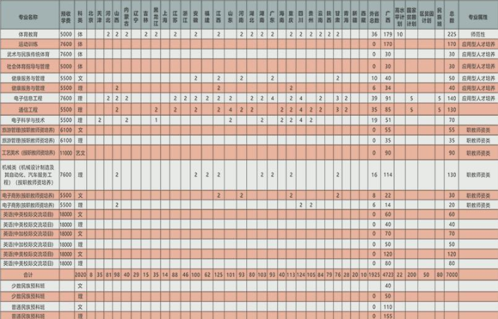 广西民族师范学院2020招生计划