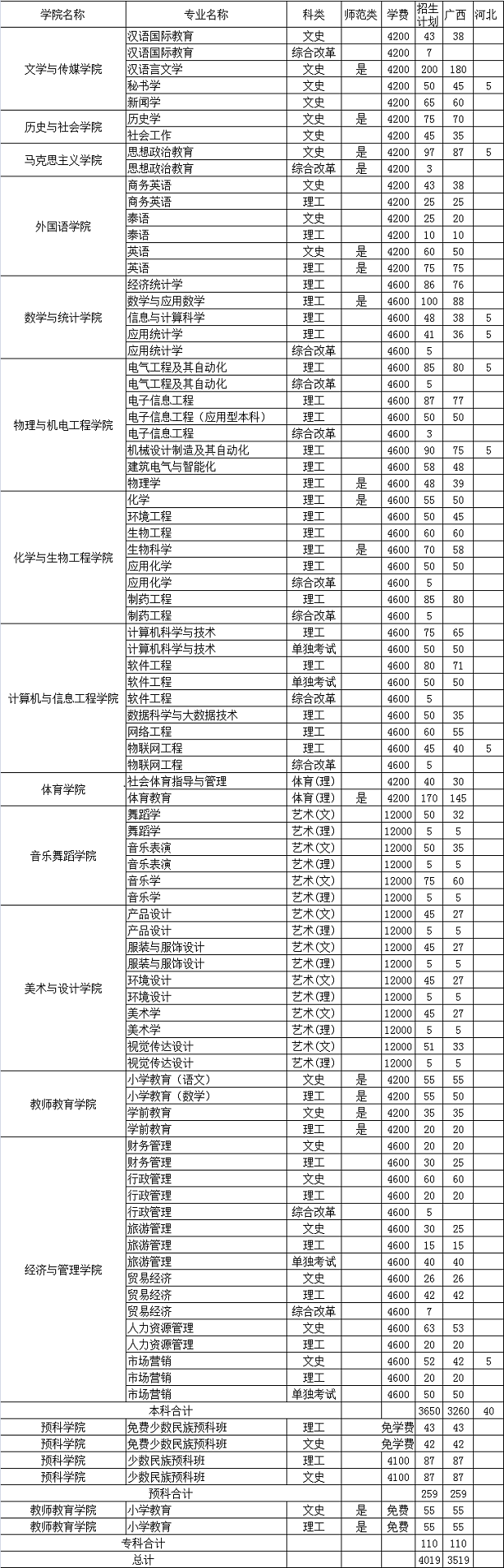河池学院招生计划2020