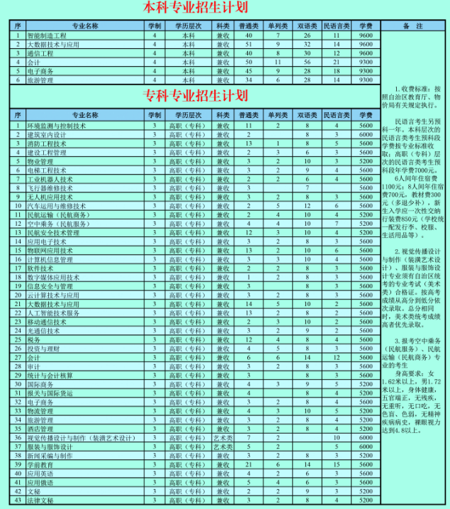学院始建于1993年,经过20多年的建设与发展,已成为一所集信息、通信、电子、财经、商务、建筑、工程、机械、汽车、外语、人文、民航、管理等专业协调发展,办学规范、管理严格、特色鲜明,深受社会各界赞誉的半军事化综合性高职院校。学院是自治区高职单招(自主)试点院校。