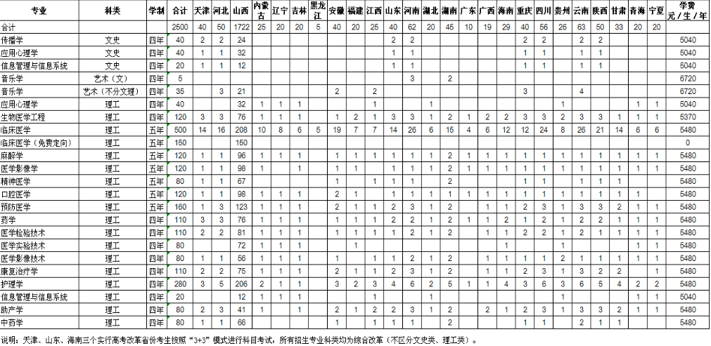 长治医学院招生计划及人数
