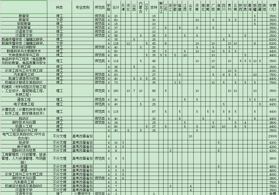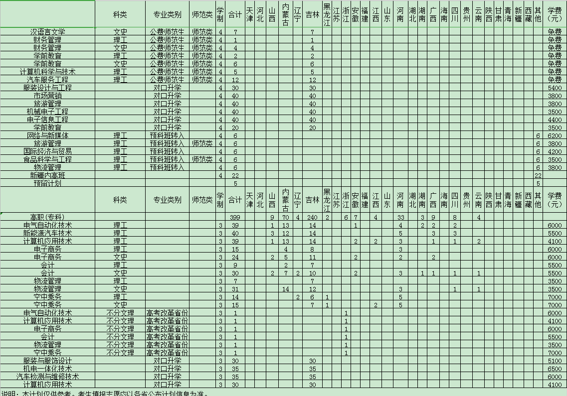 吉林工程技术师范学院招生计划2020