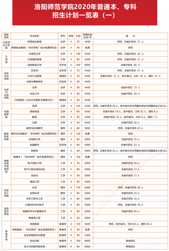 高校招生计划是考生填报志愿时的一个重要依据,下面小编整理了洛阳师范学院2020年的招生计划,供大家参考!
