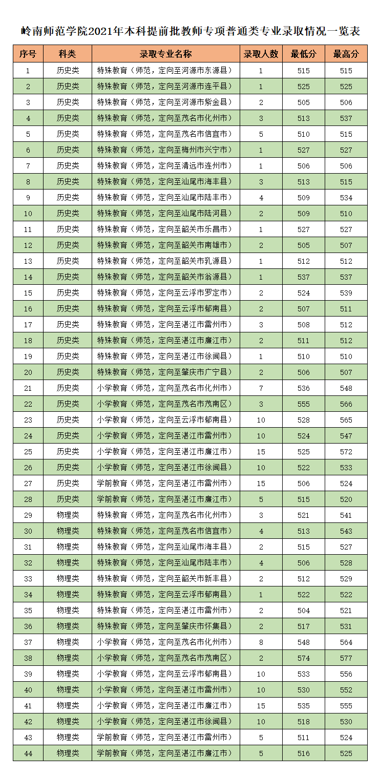 关于岭南师范学院于2021-07-15 09:32:02发布的岭南师范学院2021年本科提前批教师专项计划普通类投档录取...