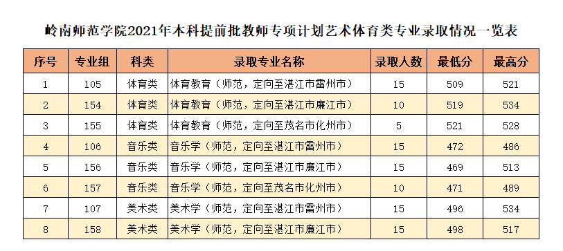 关于岭南师范学院于2021-07-16 15:31:53发布的岭南师范学院2021年本科提前批教师专项计划体育艺术类投档...